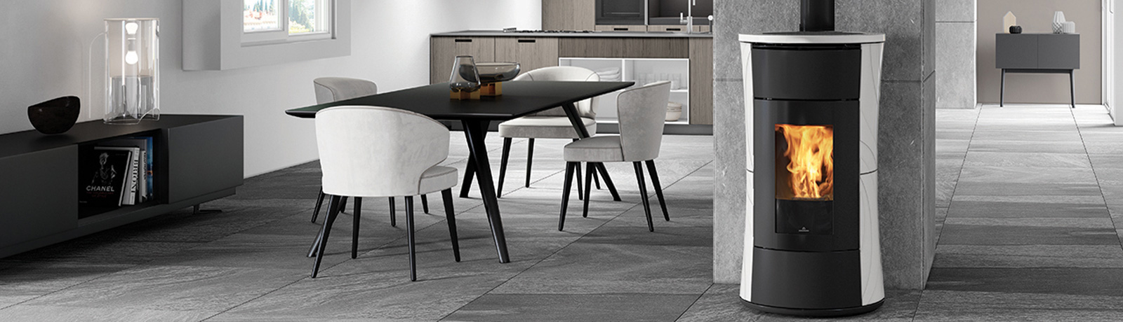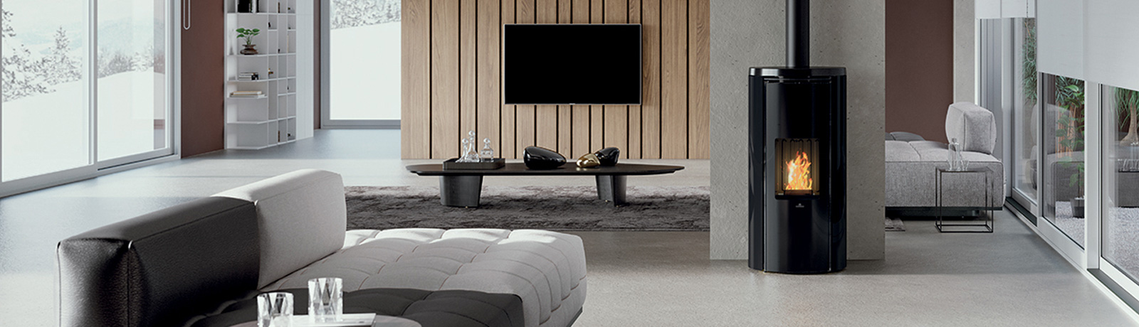 - Poêle à pellets compact, 30 cm de profondeur, même en version étanche.